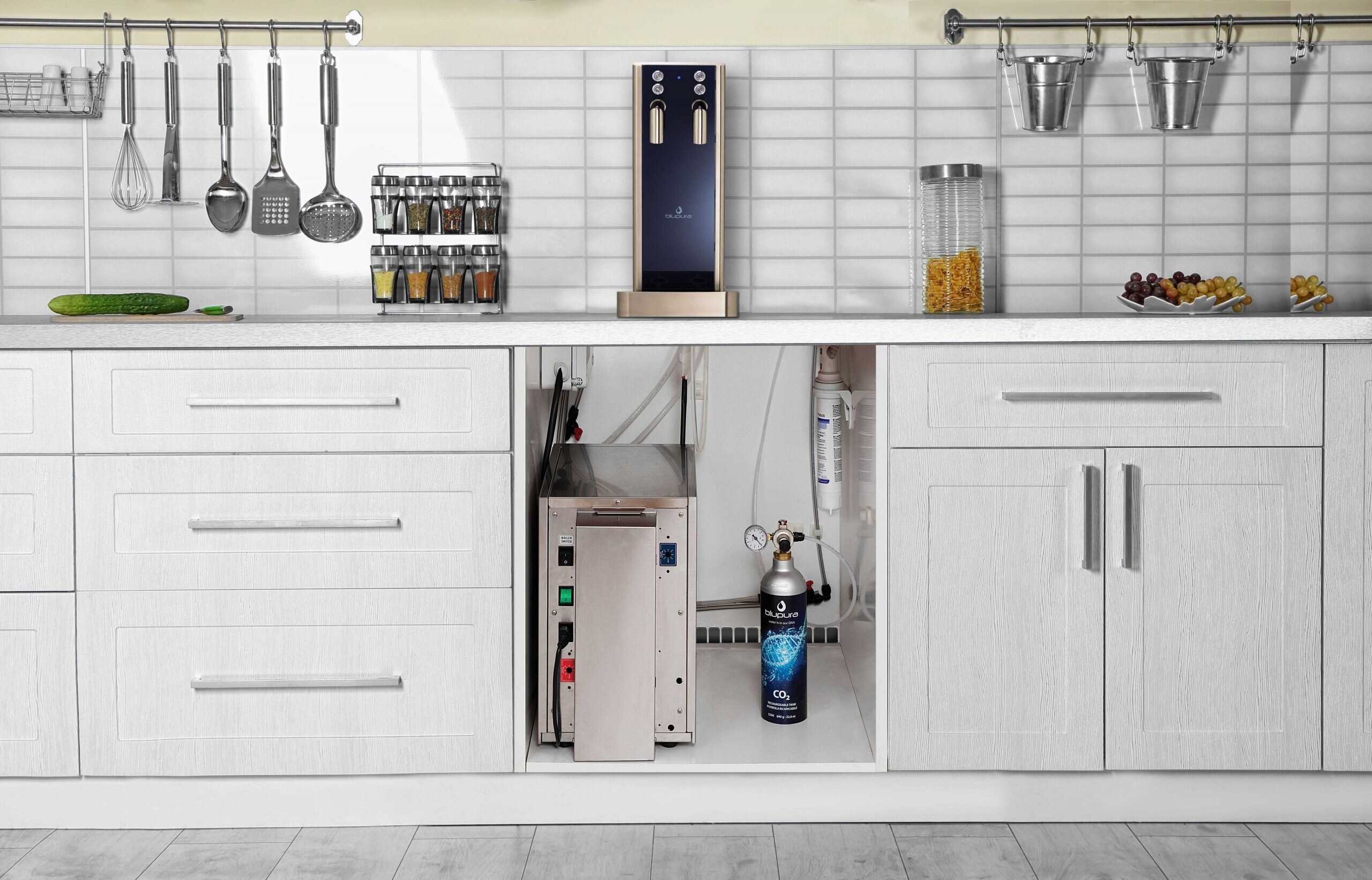 Die ganze Eleganz des Bluglass-Designs in einer Armatur, die nur ein Minimum an Platz auf der Arbeitsplatte einnimmt, mit professioneller Leistung und wirklich einzigartigem Design.