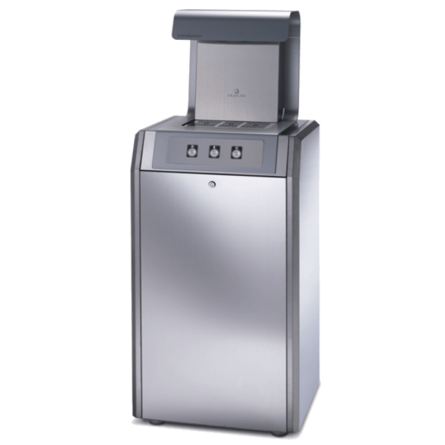 Dieser freistehende ökologische Sprankle-Wasserkühler wird über vandalensichere Edelstahldrucktasten bedient. Sowohl das Gehäuse als auch die Innenteile des Wasserhahns bestehen aus Stahl und Edelstahl, wobei die Kunststoffteile auf ein absolutes Minimum beschränkt sind.